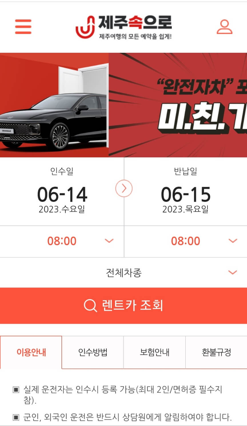 제주속으로 사이트 역시 렌트뿐만이 아니라 숙소, 관광지, 항공까지 예약이 가능하며 제주도 여행을 한번에 해결할 수 있어 편리한 사이트입니다.